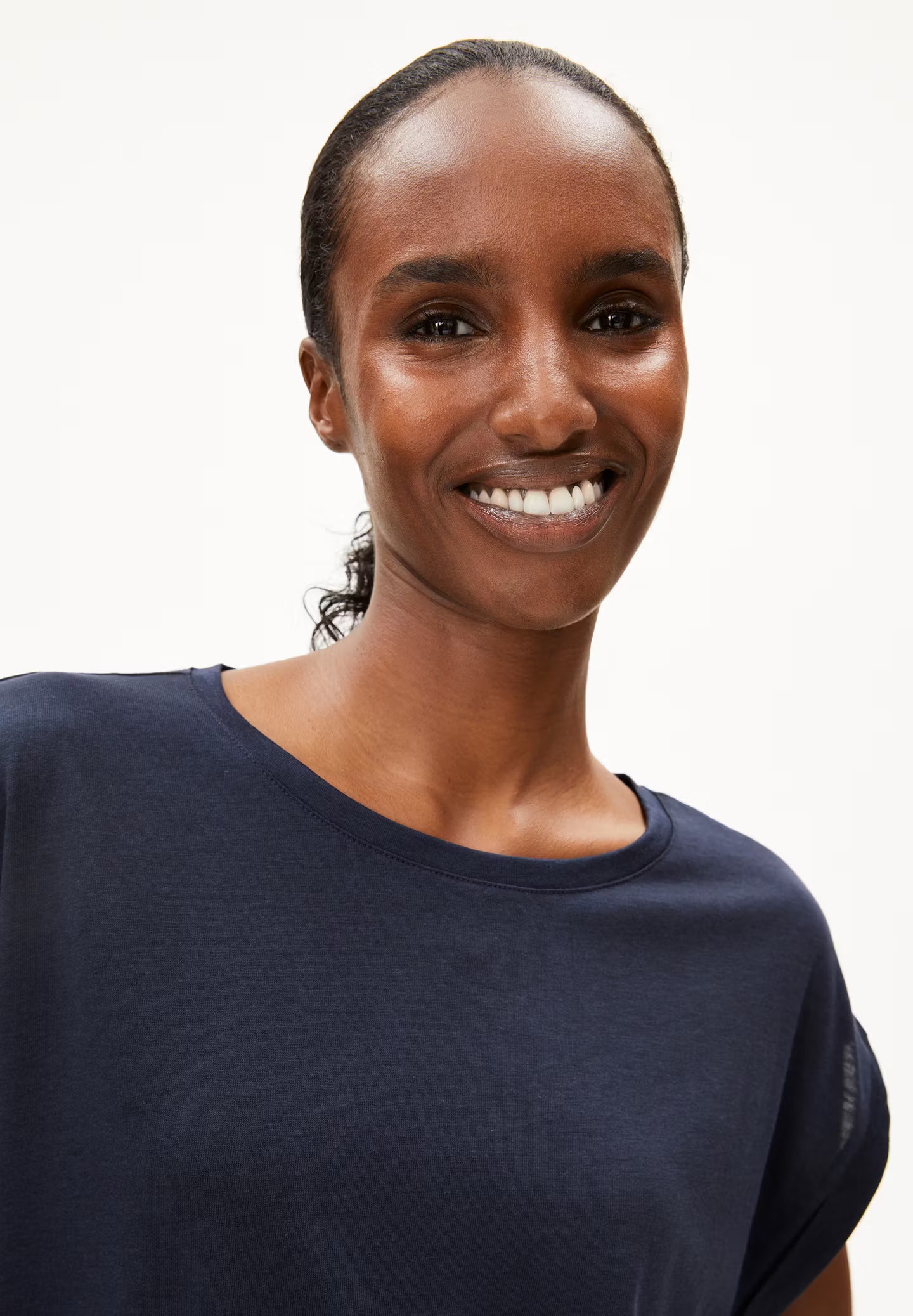 JILAANA T-shirt offers you a comfortable, loose fit and a pleasant blend of TENCEL™ Lyocell and organic cotton. The soft fabric fits snugly and ensures a relaxed feel.