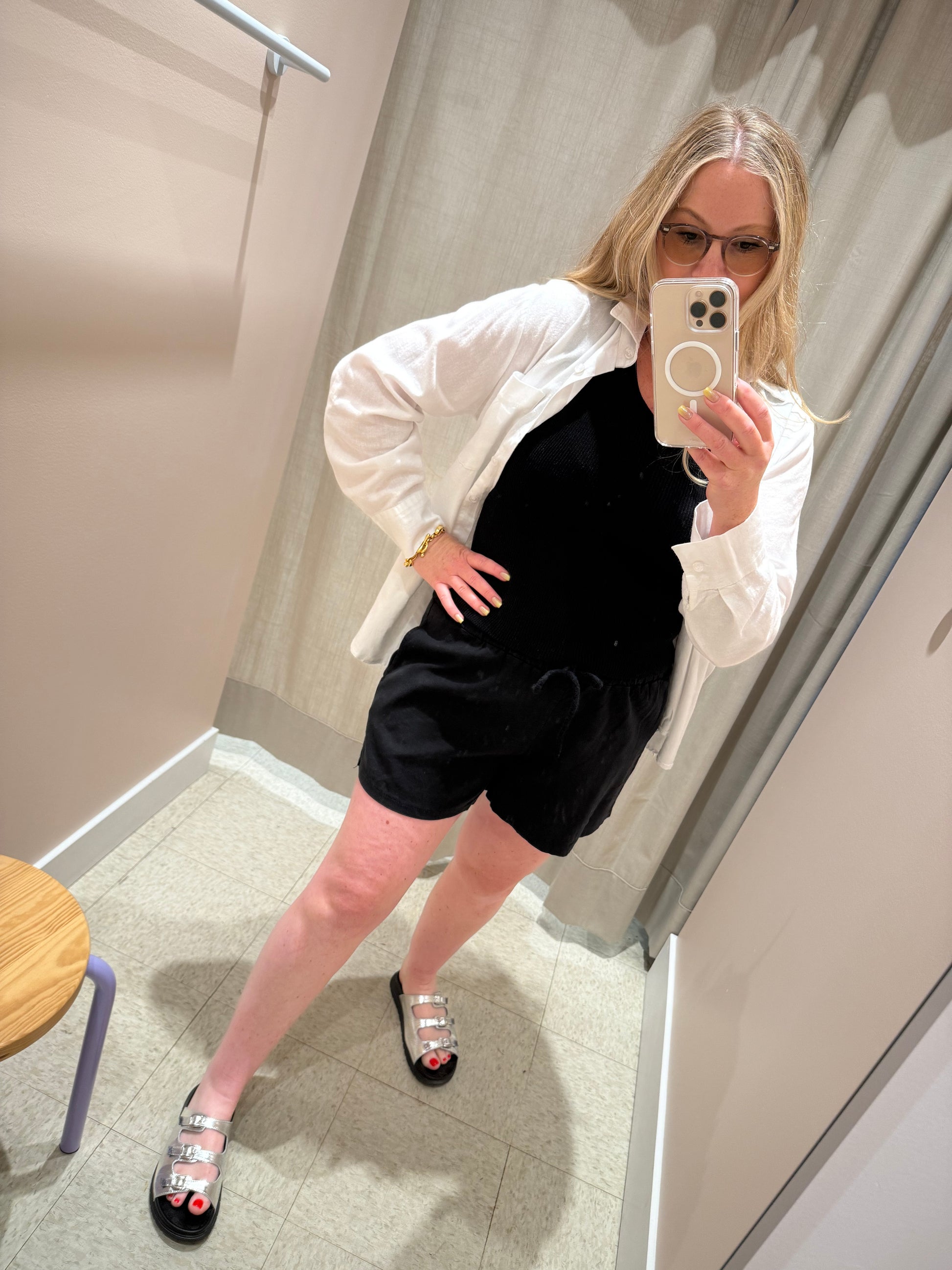The perfect summer blouse to match the shorts, made in Italy of a Linen Viscose Blend, breezy and cool and a touch on the short side. Fits true to size or size up for a more flowy fit.