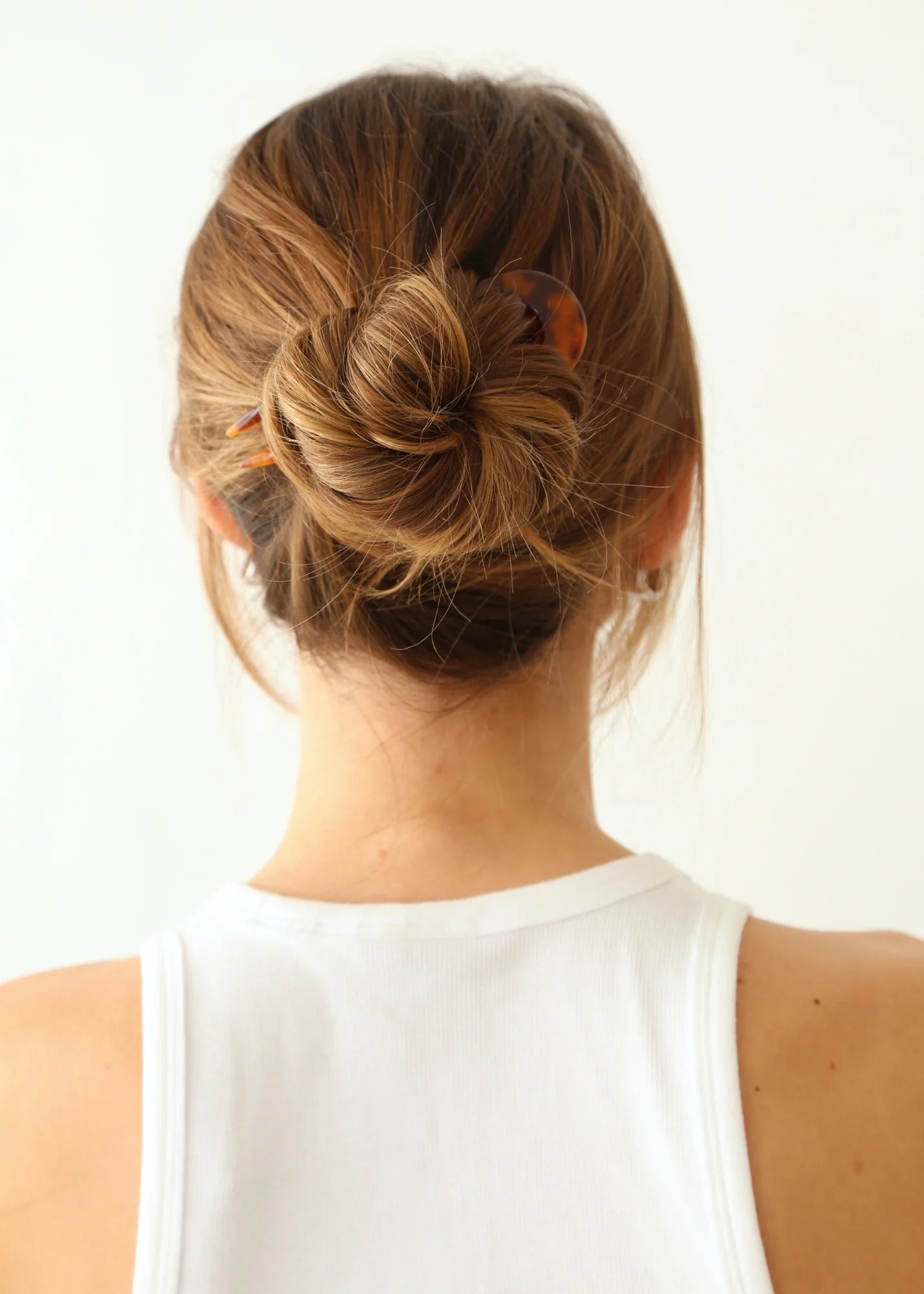 Sleek, minimal, and effortlessly functional. The French Pin secures updos and twists with ease, holding hair in place without pinch or slip. Its U-shape design lets it slide smoothly into all hair types, making styling quick, simple, and polished.