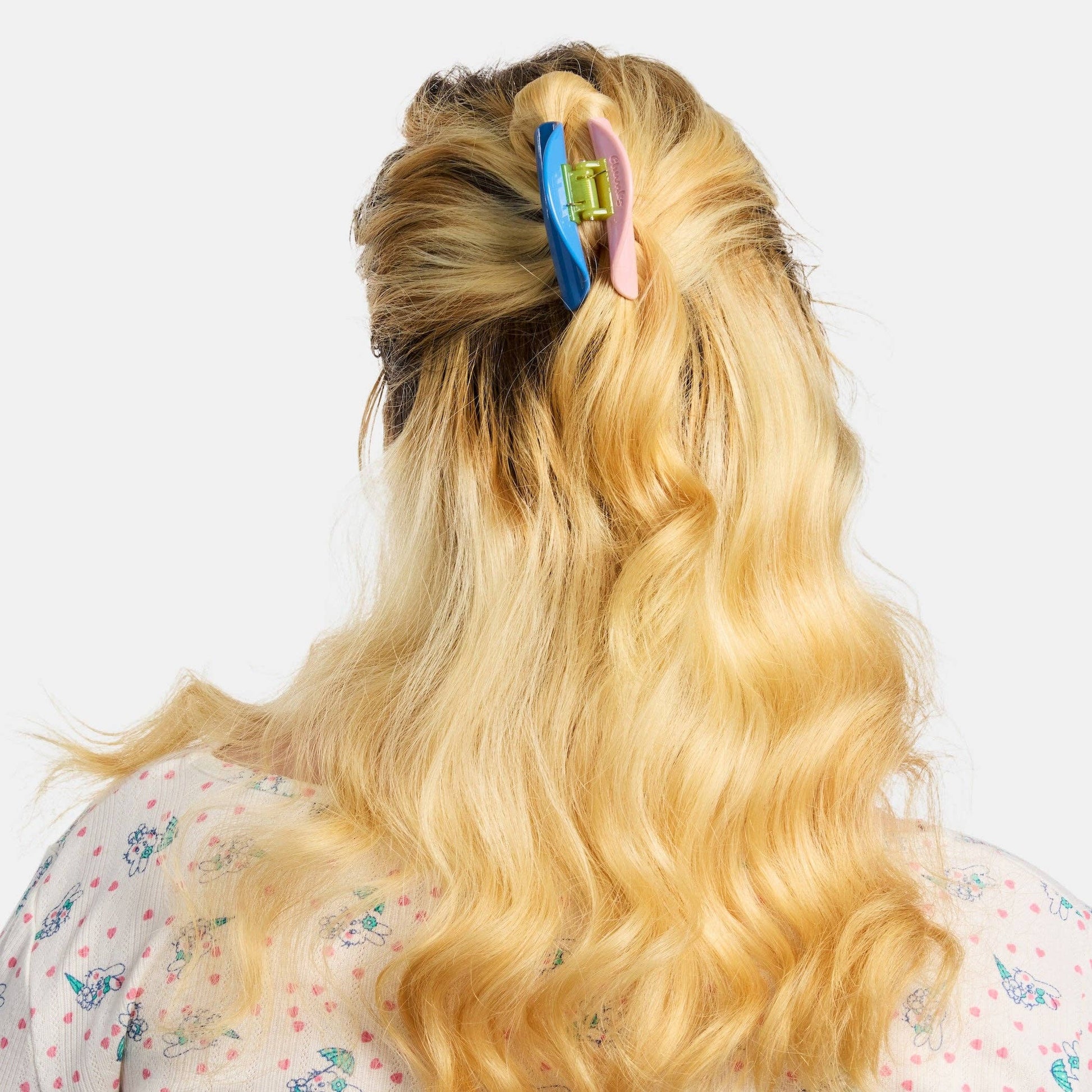 This small-ish-sized hair claw is recommended for all hair types and textures. Perfect for fine hair buns and thicker hair half-updo's!