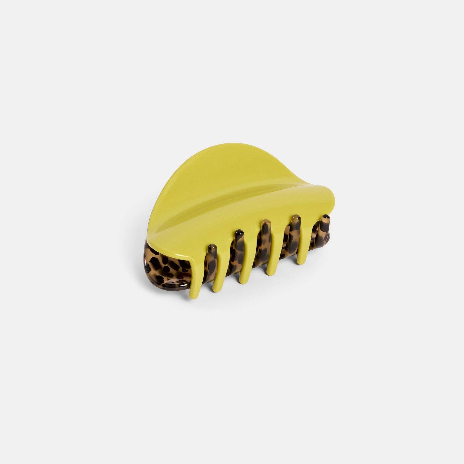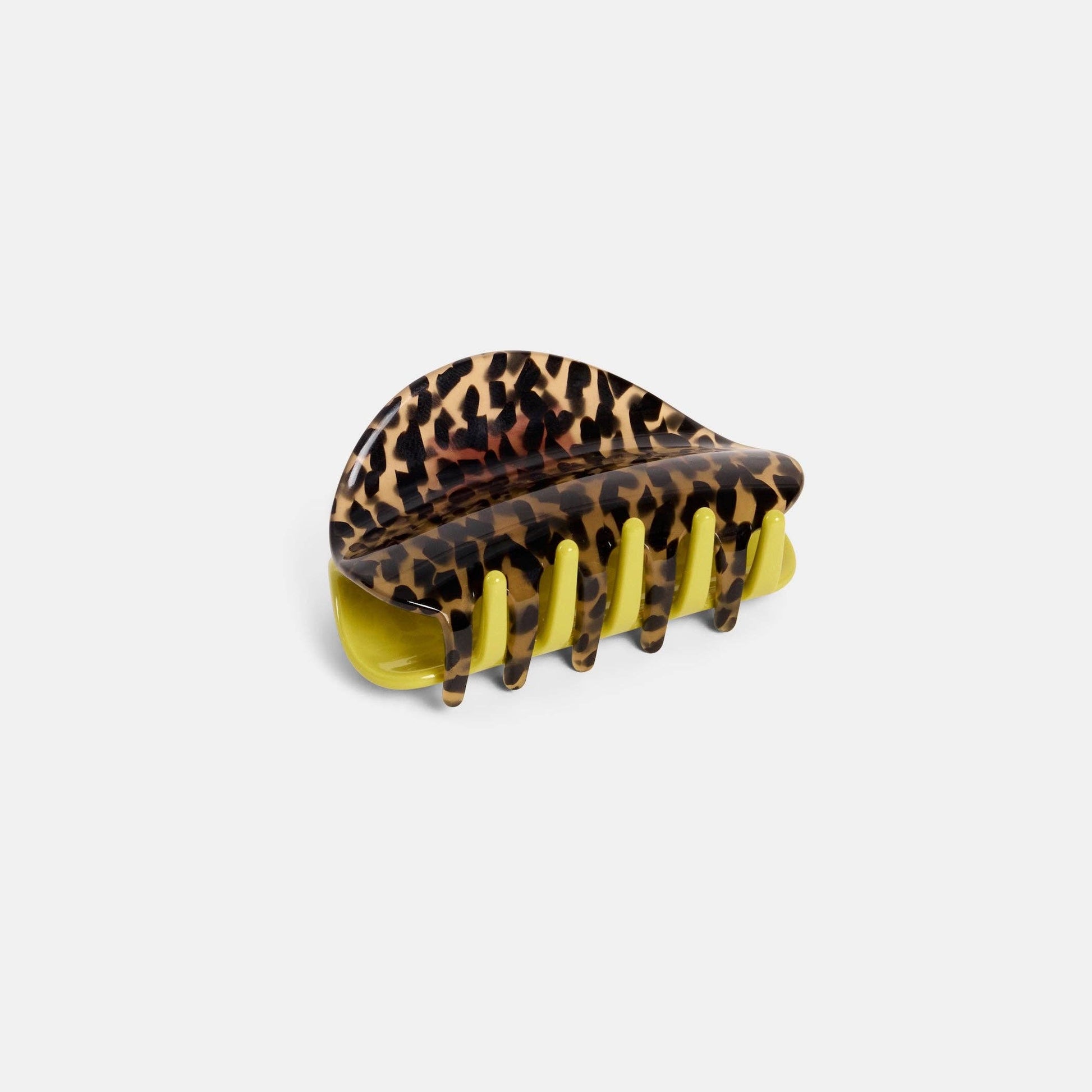 This small-ish-sized hair claw is recommended for all hair types and textures. Perfect for fine hair buns and thicker hair half-updo's! Made from high quality acetate; a durable, plant based bio-plastic. Metal hardware is lead and nickel-free. Slight variations will appear with pattern, color and form due to the handmade nature of the product. Measures approx 2.75"L x 1.5"H x 1.5"D Color: green, brown, silver tone hardware