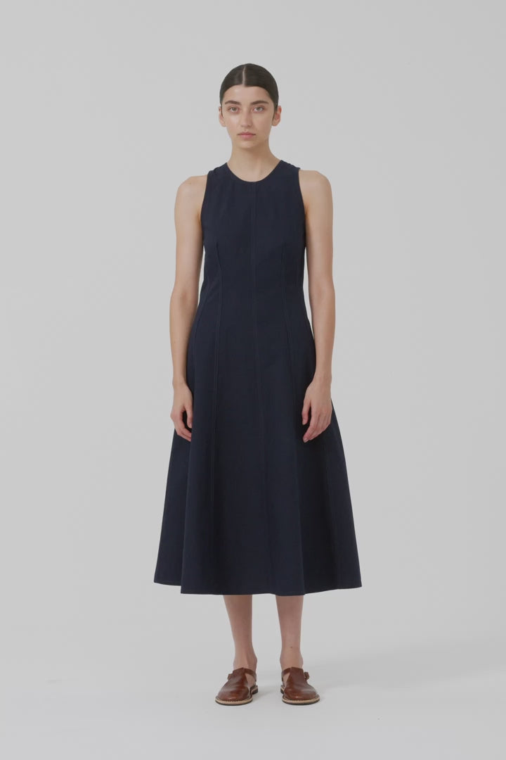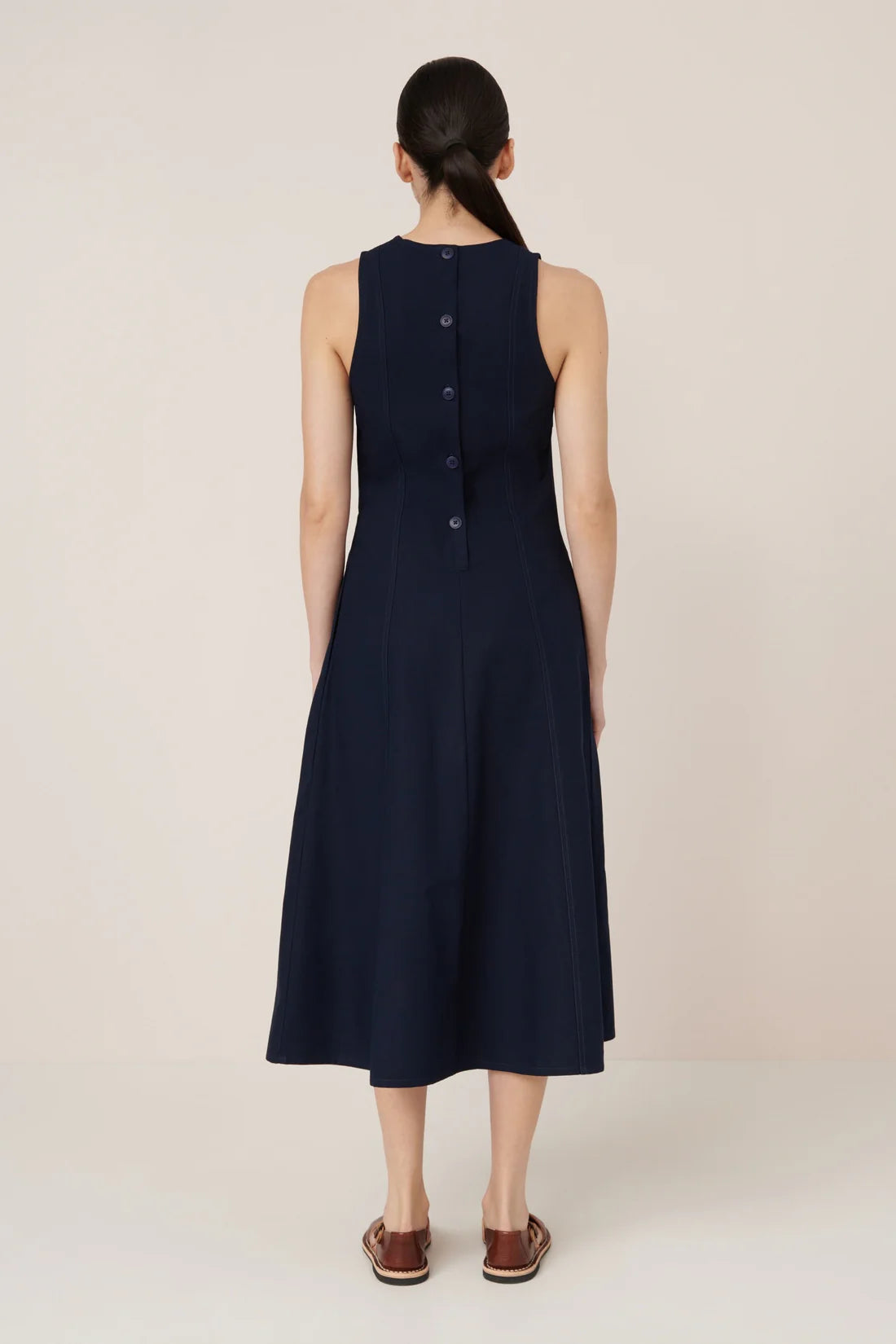 The Framework Dress is shaped through panelling at the torso and gently flares from the waist, creating a flattering silhouette with a standard fit. Made from organic cotton canvas, it features side seam pockets and nut buttons at the back, and finishes at a midi length. Both practical and elegant, this dress is the perfect wardrobe staple.