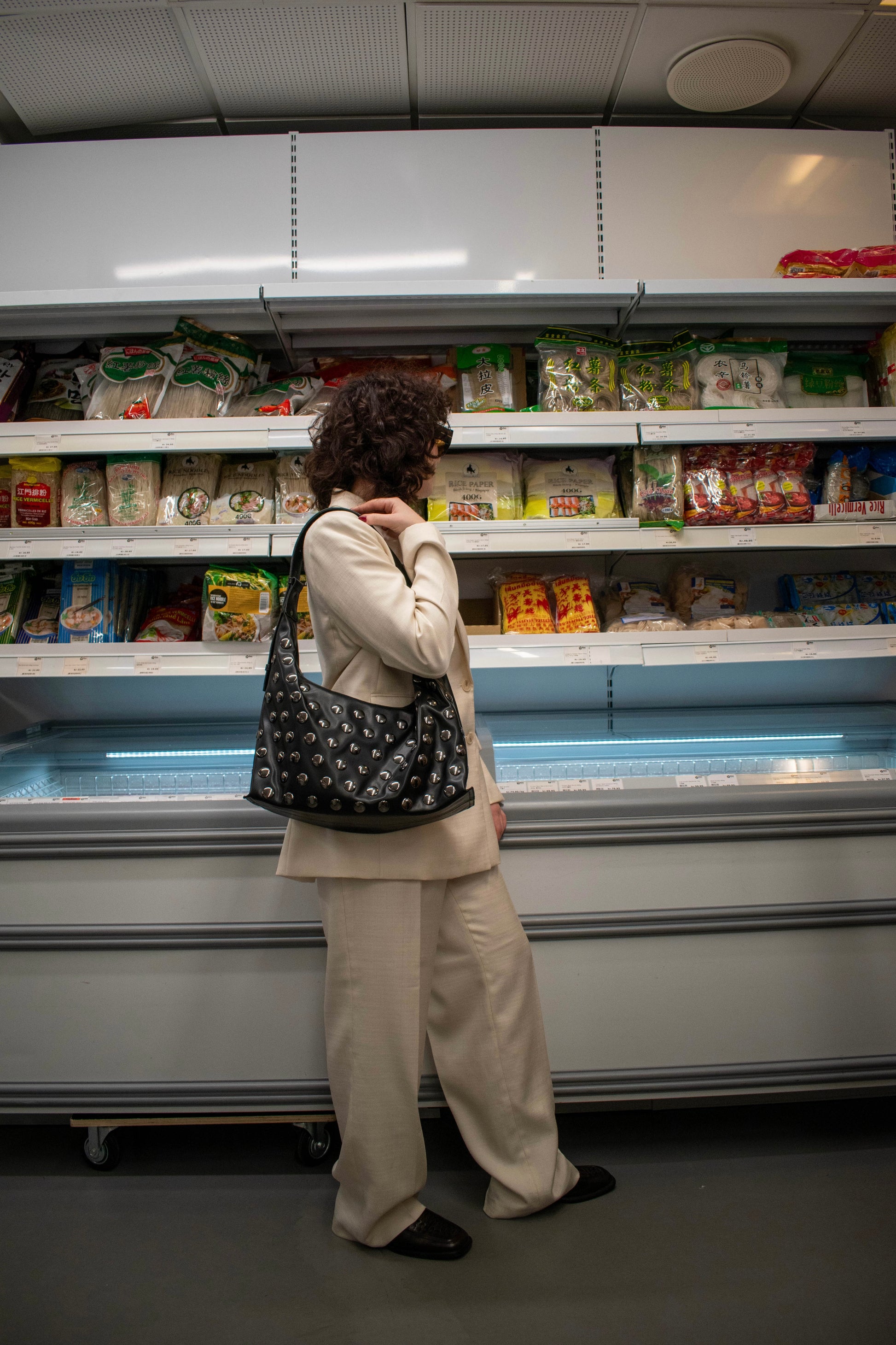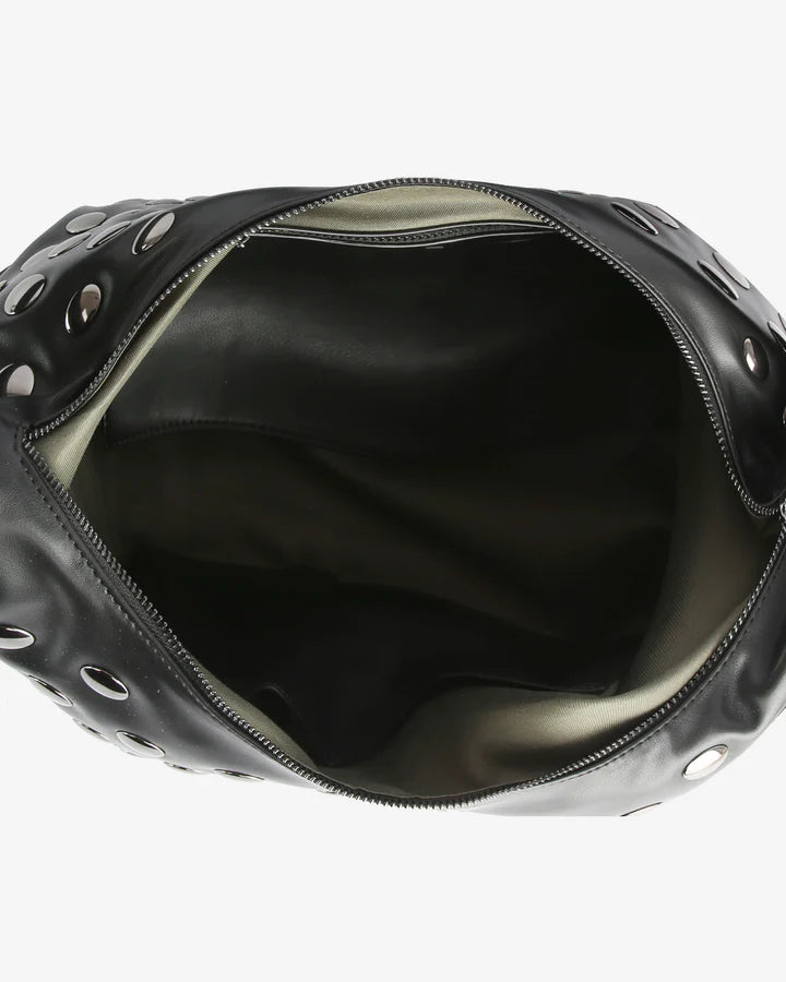 Shoulder bag with adjustable strap and zip closure. The bag contains one compartment with two inner pockets and one inner zip pocket.