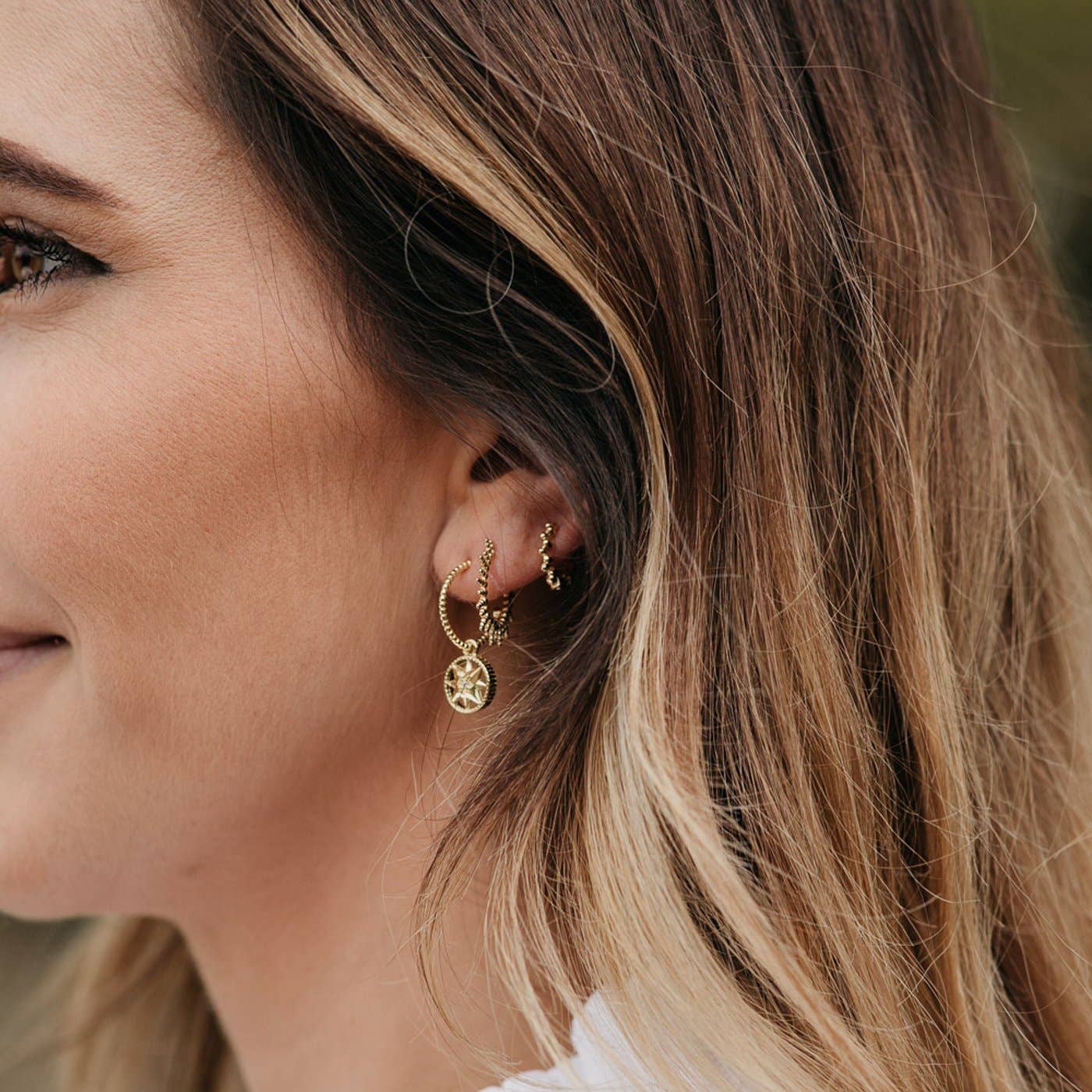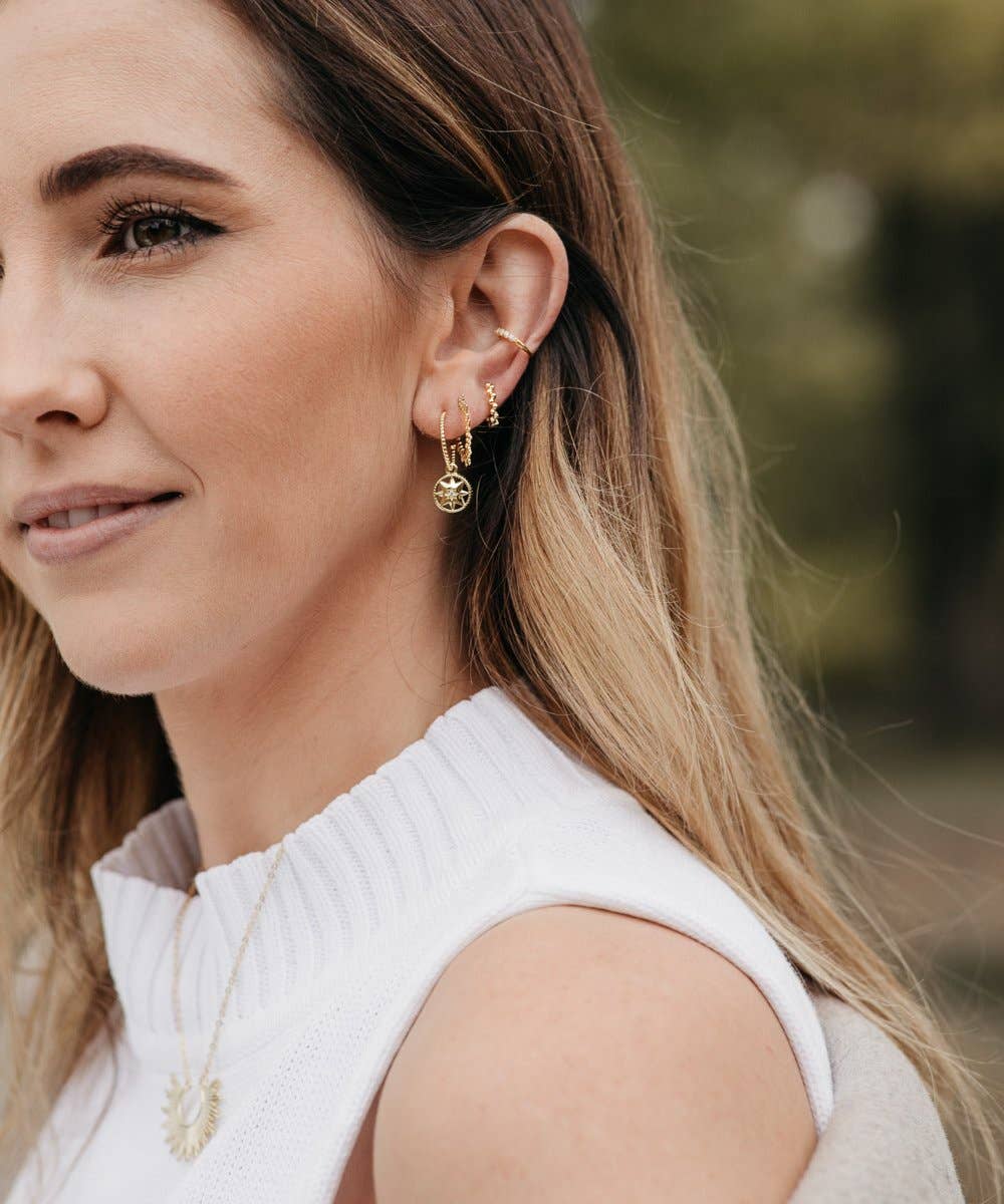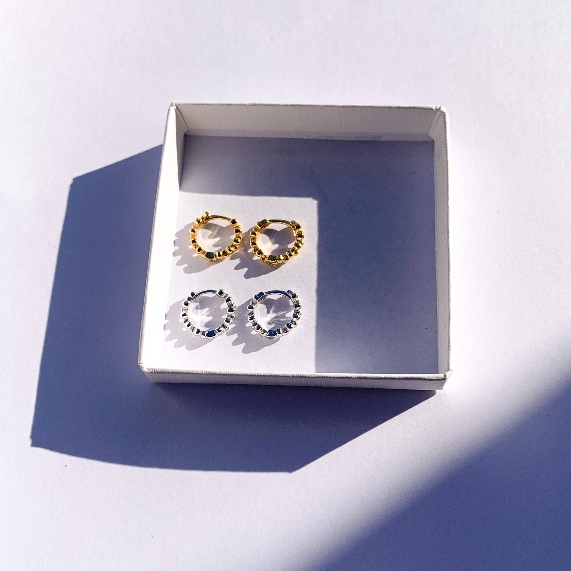 PAIR Detailed Ear Hoops Overview Pure 925 Silver. Modern E-Coating. 999 Silver Plating. Hinged Closure Ear Hoop. Hoop Size: 1.2cm. Nickel Free and Allergy-friendly. Features Can you feel the love tonight? The Nala hoops are our all-time favorite earrings. These beaded ear hoops add a special layer and detail to our ear-stacks. The rough finish to these mini hoops catches the light and helps you shine bright with all your outfits. Always lightweight, comfortable to wear, and hypo-allergenic, we promise with all our heart that Nala is your new favorite too. 925 Sterling Silver is coated with high-quality 999 Silver or 18K Gold plating to ensure your earrings will be long-lasting. Click here for advice on how to take care of your jewelry.