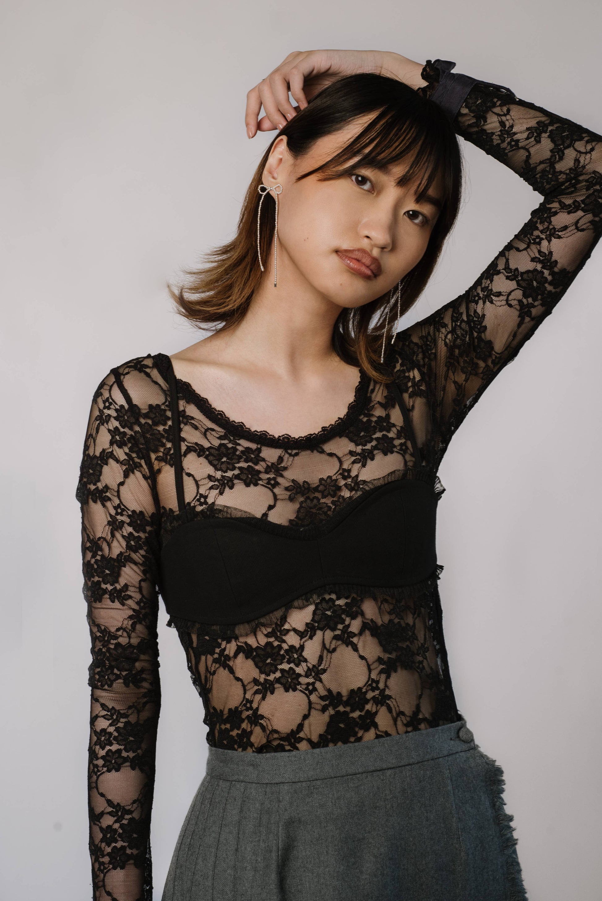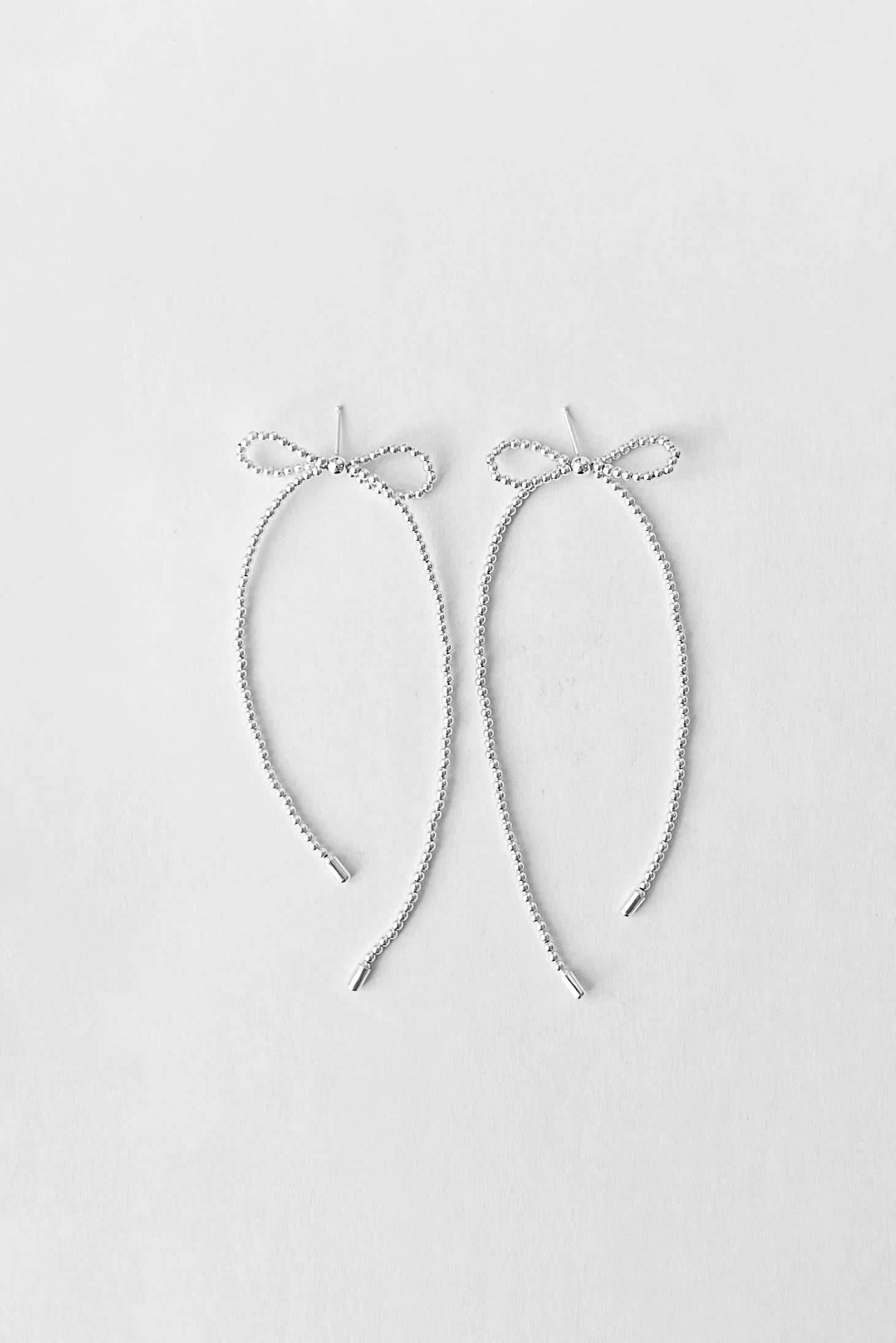 A hand beaded rice pearl bow earring with a casual drape so it feels lighthearted and cute.