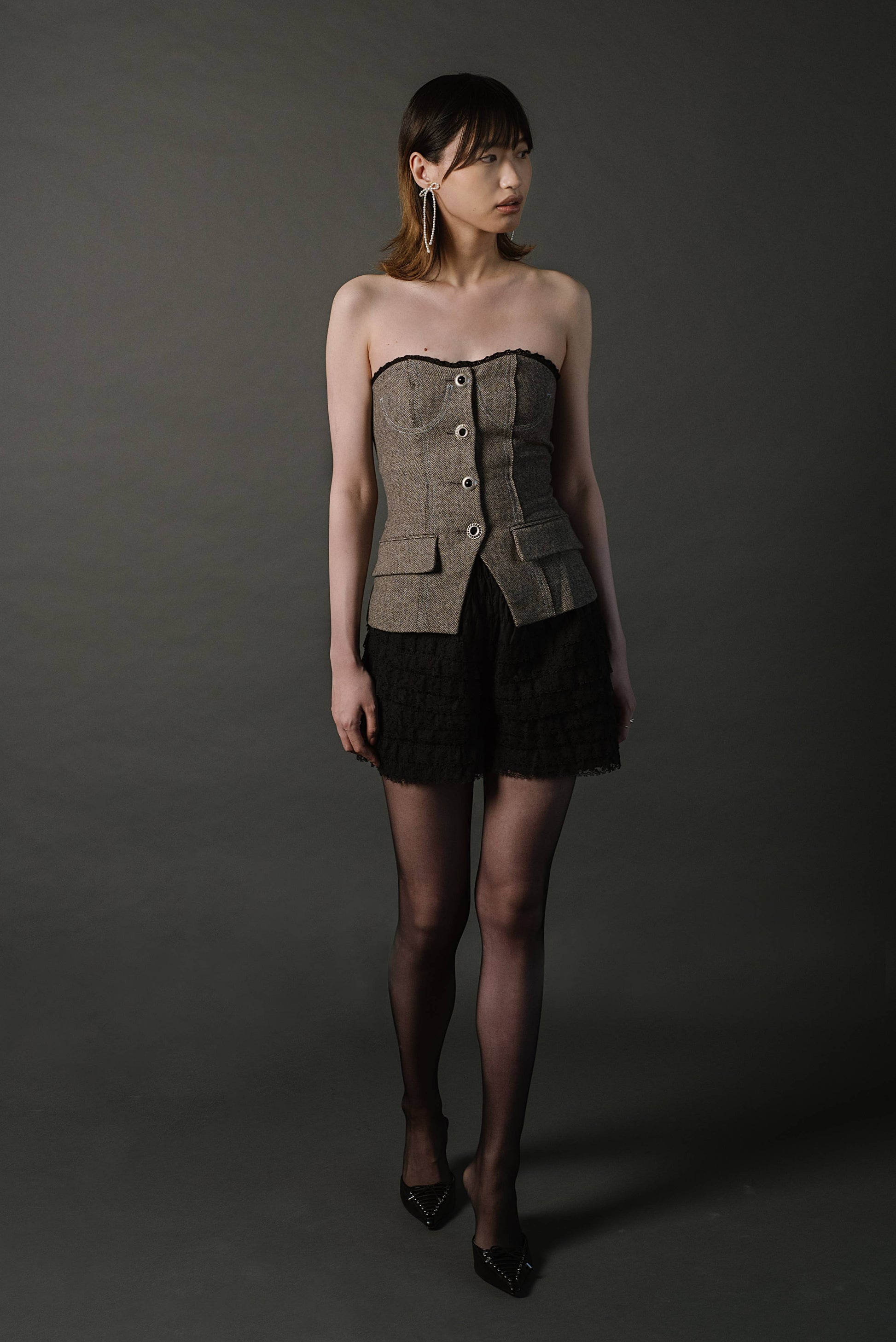 Kara Yoo beaded a bow in sterling silver and pearls, made it cute and lighthearted with the most casual drape. Then She made it into an earring and was in love. Approx. 3.6cm wide by 9.5cm long. Available in Rice Pearl or 2mm Sterling Silver beads. Sterling Silver findings. Designed and made in Vancouver, Canada by Kara Yoo.