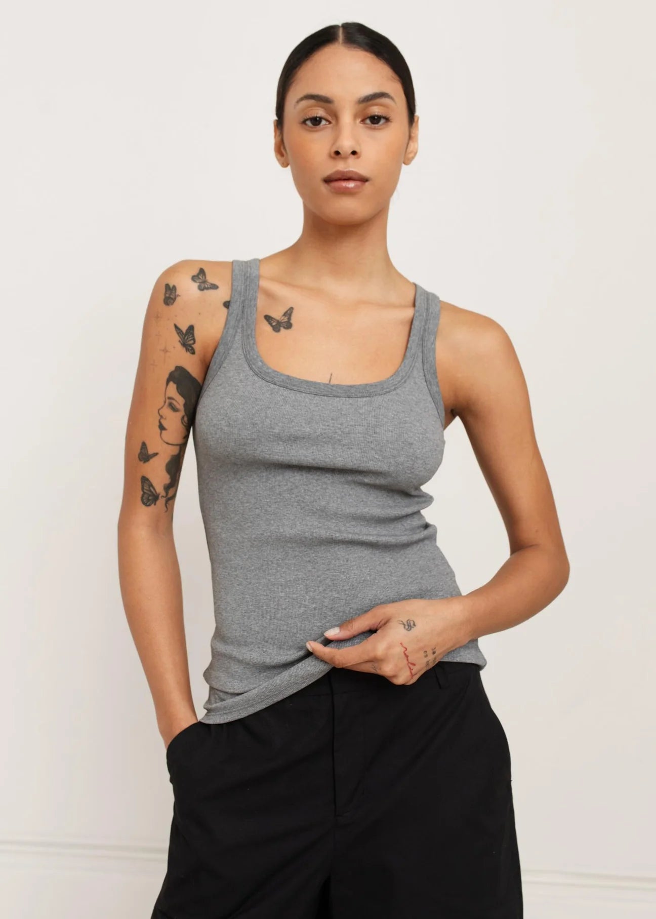 The kind of tank you love so much you get it in every colour. Super soft cotton rib with 7% spandex for retention, makes this a wardrobe staple. Great for sleep, light exercise, layering, and all-day comfort. The long length and scooped neckline both front and back make this tank effortlessly stylish. You can even wear Mara backward!