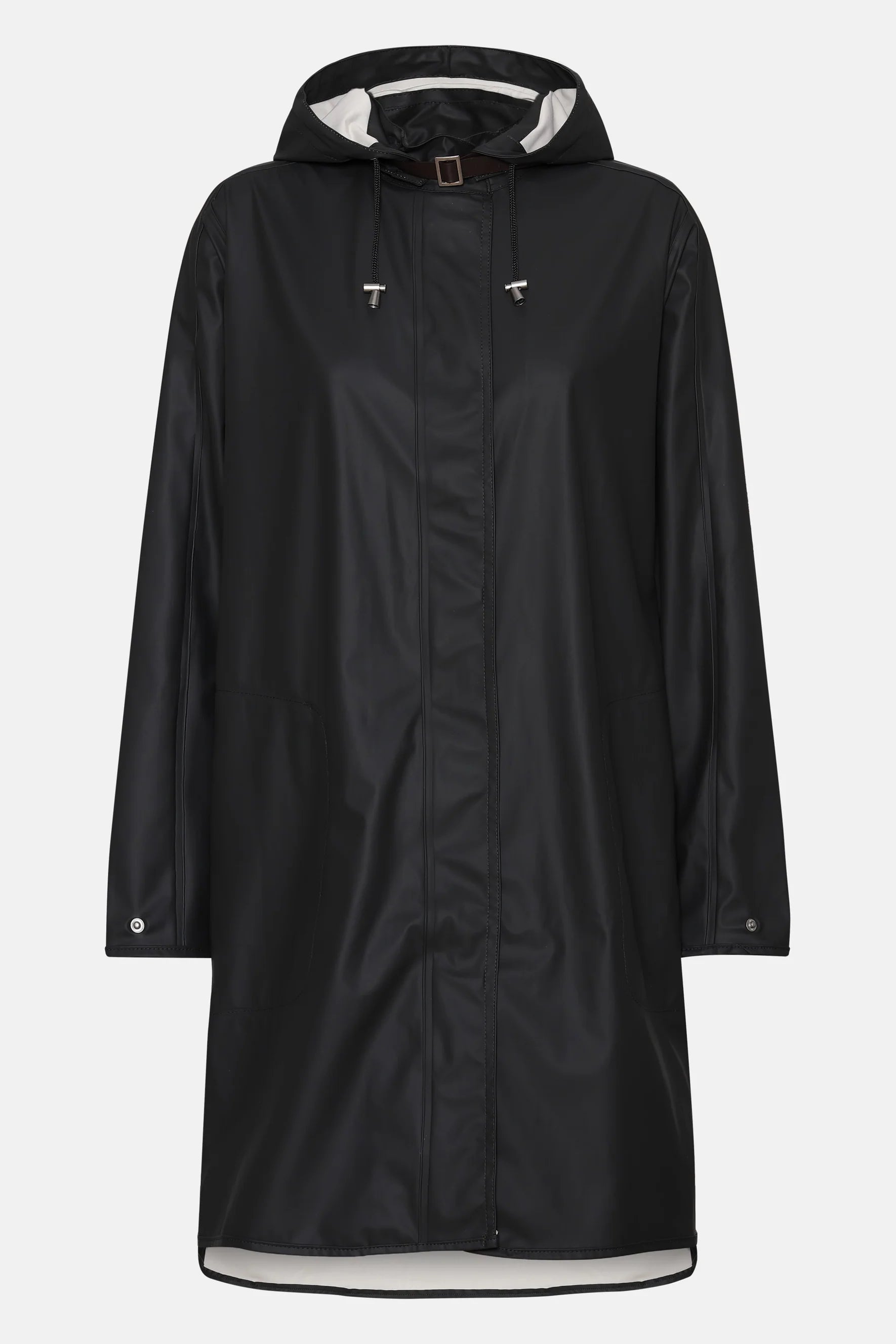 RAIN71 from ILSE JACOBSEN HORNBÆK is a modern, A-shaped take on the classic raincoat, featuring a medium water-resistant rubberized PU shell with a water column pressure rating of 5000 MM and soft tricot lining for year-round comfort. Its detachable hood, adjustable cuffs, and roomy side pockets ensure you stay dry without sacrificing style, while hidden press buttons and side slits offer extra freedom of movement—ideal for walks, bike rides, or any rainy-day adventure. Choose between two lengths and a variety of classic or seasonal shades, and enjoy a versatile piece that easily layers with sweaters or quilted jackets when temperatures drop.