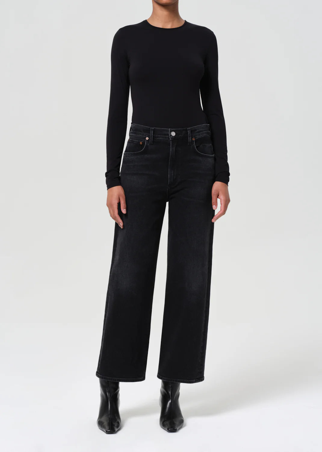 AGOLDE's Ren jeans from the Weightless Collection offer the perfect blend of comfort and style. Made from regenerative cotton, they feature a high-rise waist and cropped wide legs for a relaxed yet flattering silhouette. The lightweight fabric ensures all-day comfort, making them ideal for casual wear. Pair them with a half-tucked tee for a cool, effortless look.