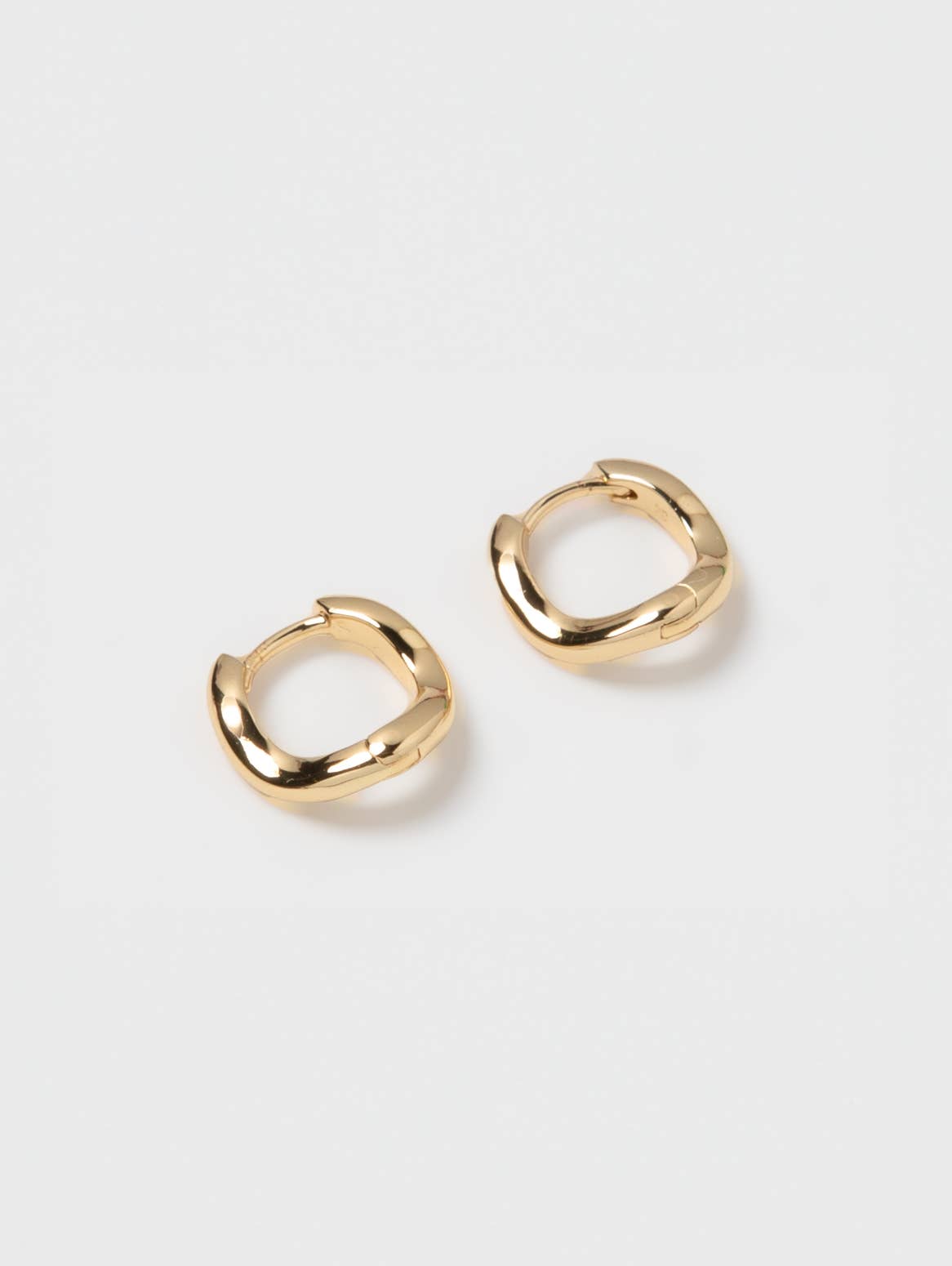 • 14k Gold plated brass organic huggie hoops with 14k gold plated hinges