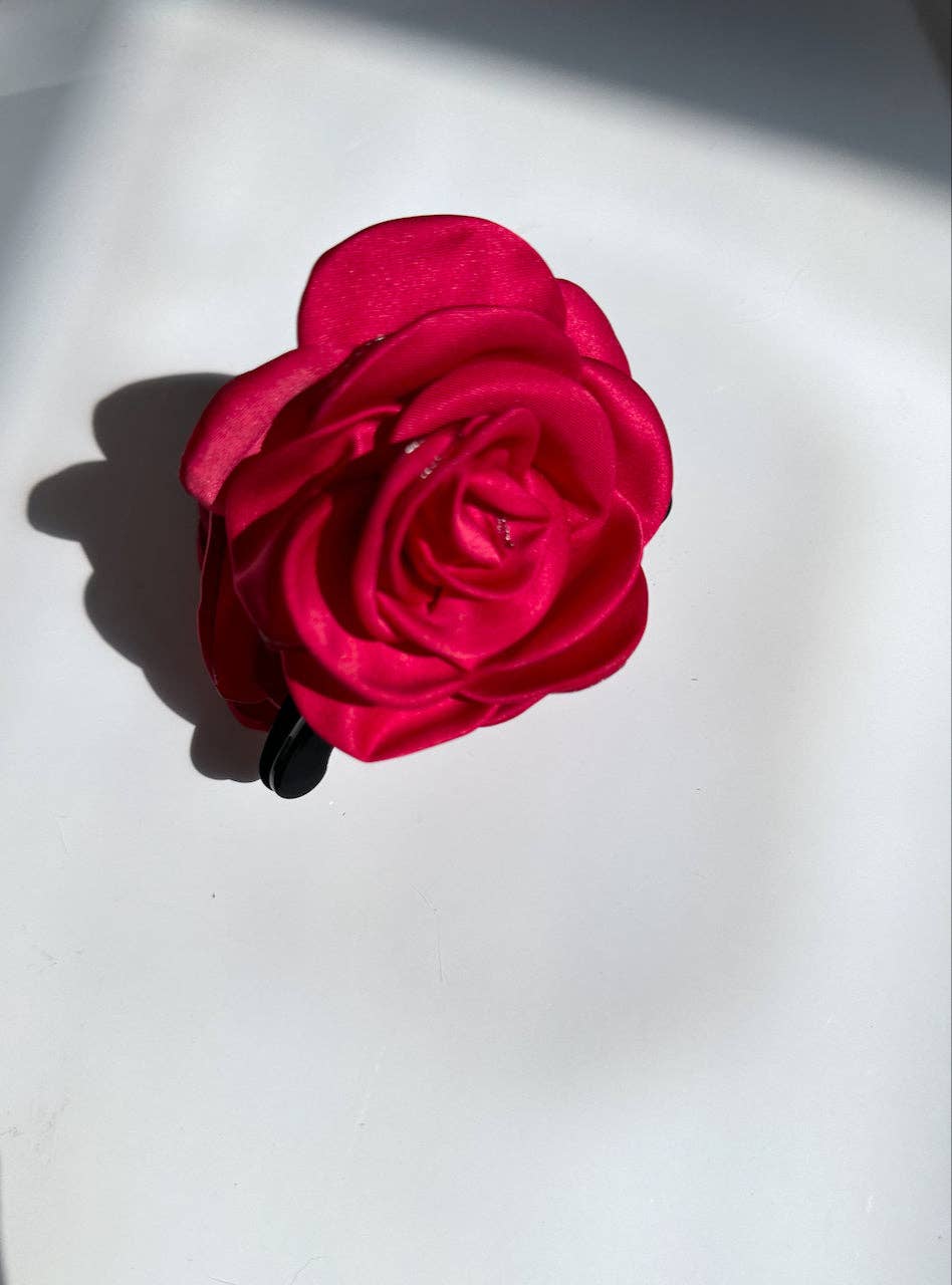Solar Eclipse | Handmade Big Satin Rose Flower Hair Claw Clip - Red