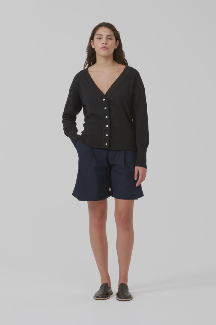 An elevated, lightweight style, the Willow Cardigan is crafted from organic cotton and knitted in a fine single jersey stitch. Featuring a relaxed fit and a flattering deep v-neckline, it is finished with wide ribbing at the cuffs and hem. It fastens through the front with delicate Agoya shell buttons and has a drop shoulder detail that adds to its effortless silhouette. Wear it buttoned as a top or open as a light layer.
