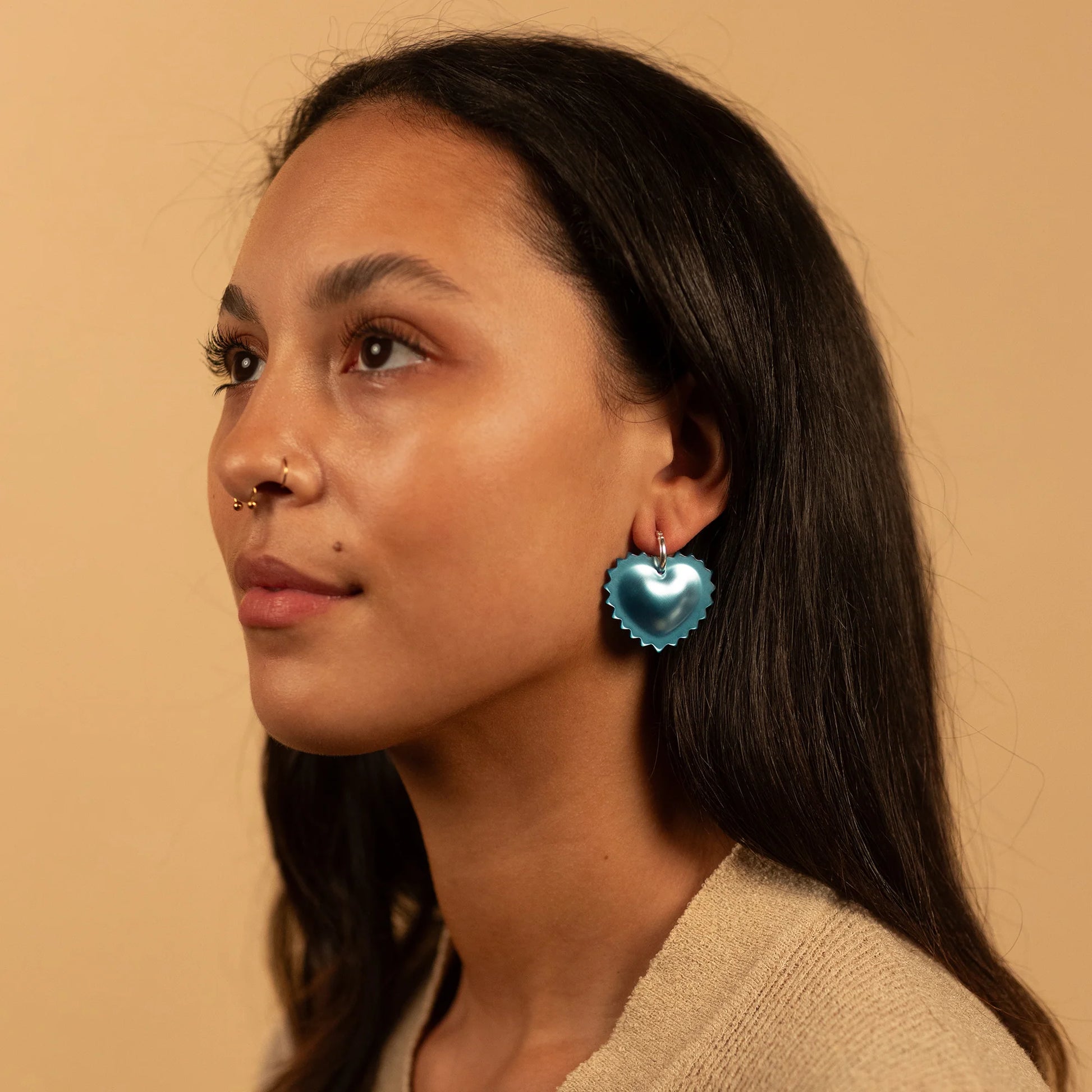 Hand-polished and formed ravioli earrings. Findings are solid sterling silver. Made in California using high quality materials.